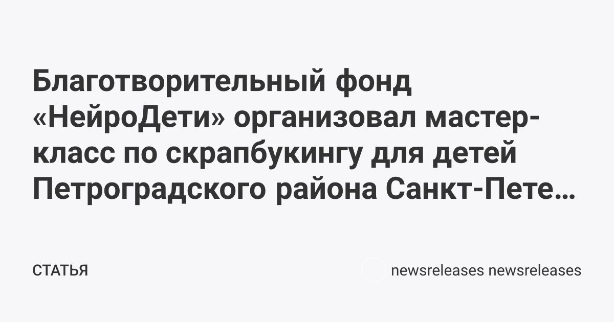 Благотворительный фонд «НейроДети» организовал мастер-класс по скрапбукингу для детей Петроградского района Санкт-Петербурга