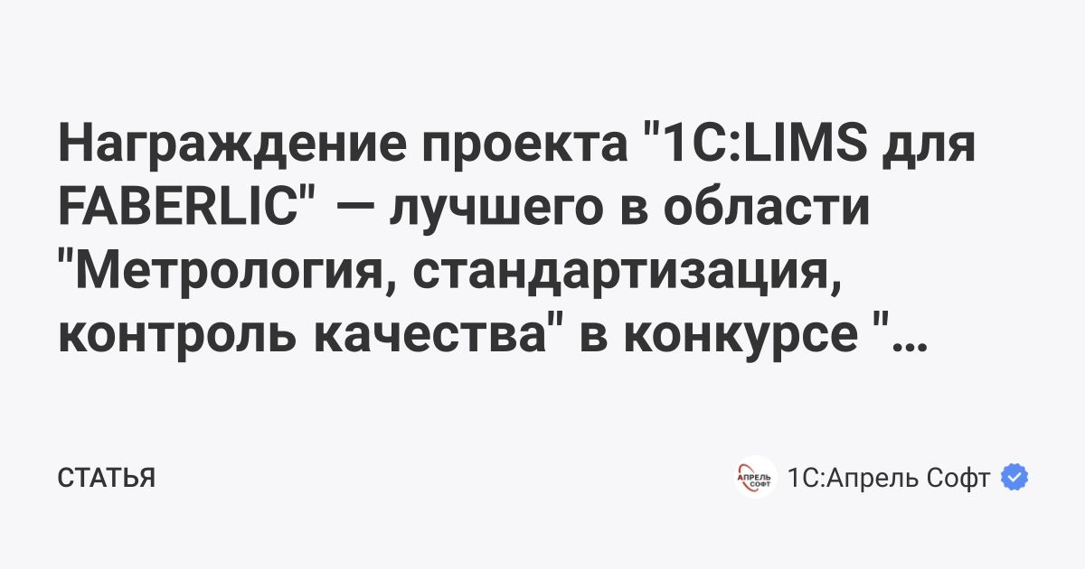 Награждение проекта "1С:LIMS для FABERLIC" — лучшего в области "Метрология, стандартизация, контроль качества" в конкурсе "1С:Проект года"