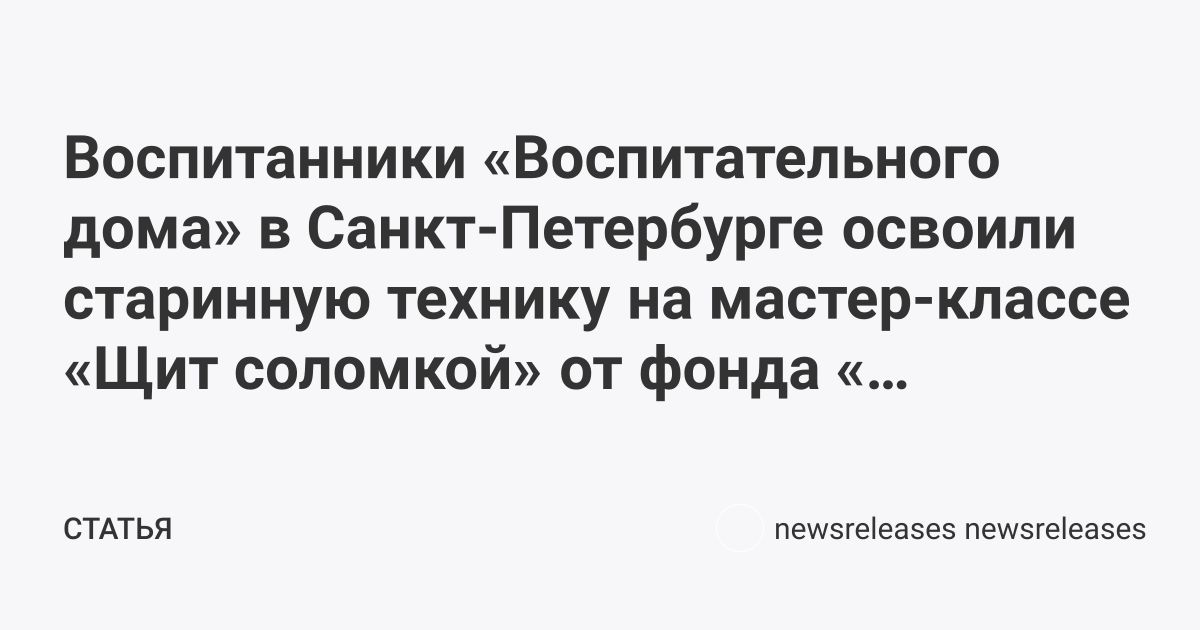 Воспитанники «Воспитательного дома» в Санкт-Петербурге освоили старинную технику на мастер-классе «Щит соломкой» от фонда «НейроДети»