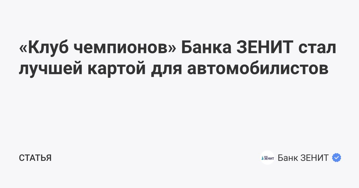 «Клуб чемпионов» Банка ЗЕНИТ стал лучшей картой для автомобилистов