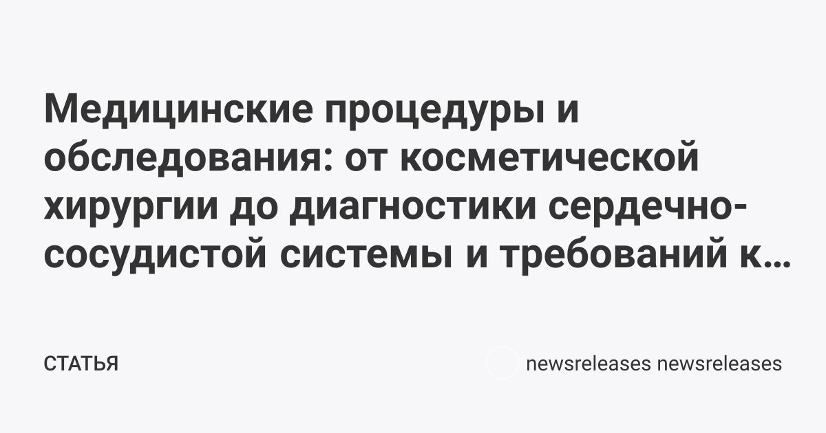 Медицинские процедуры и обследования: от косметической хирургии до диагностики сердечно-сосудистой системы и требований к здоровью работников Крайнего Севера