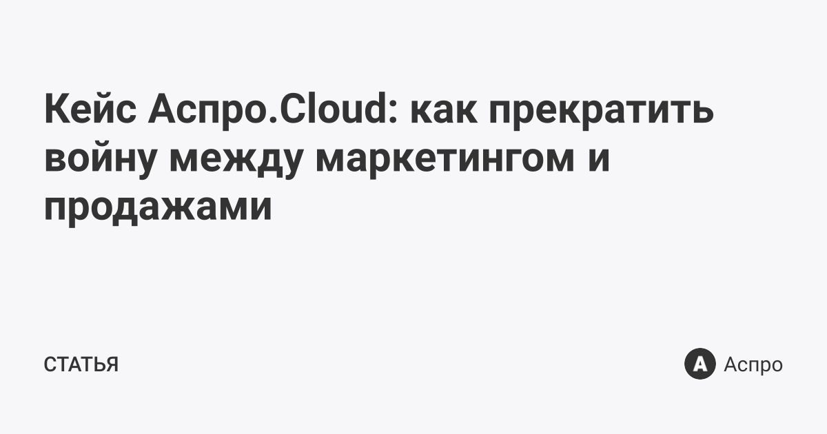 Кейс Аспро.Cloud: как прекратить войну между маркетингом и продажами