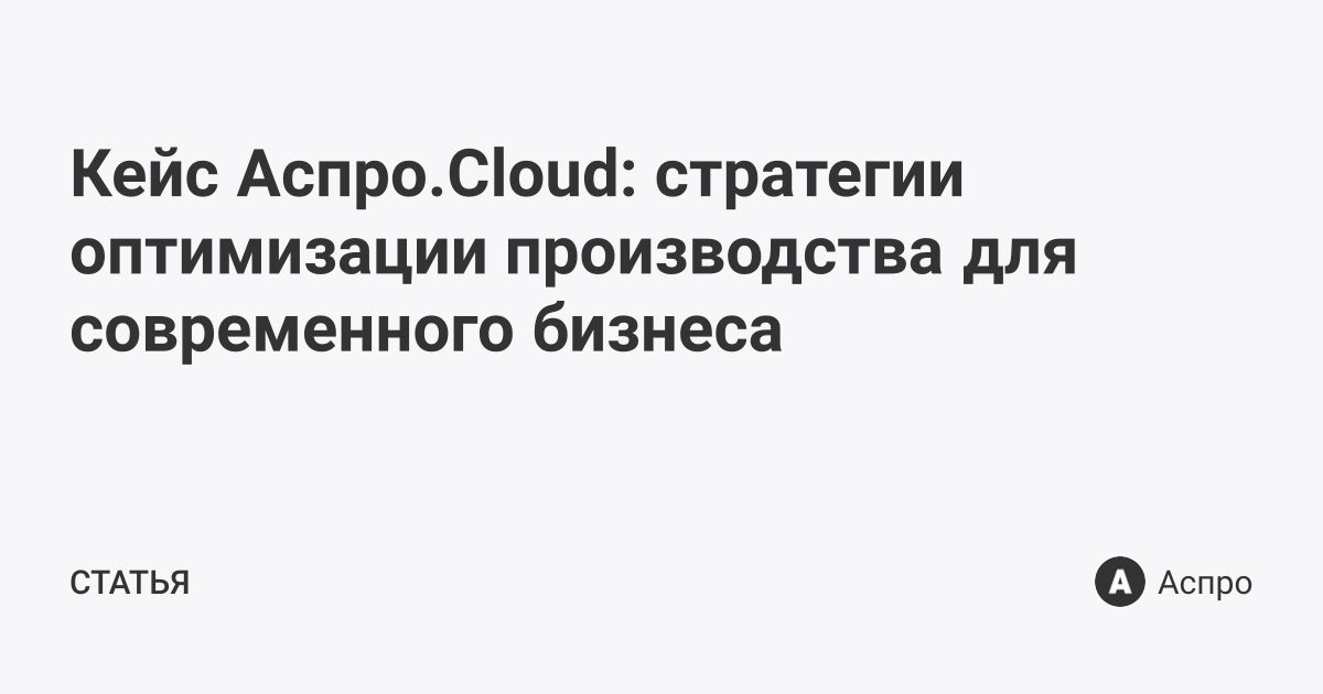 Кейс Аспро.Cloud: стратегии оптимизации производства для современного бизнеса