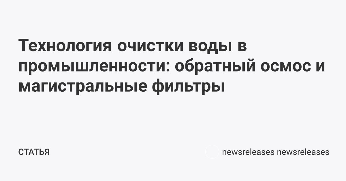 Технология очистки воды в промышленности: обратный осмос и магистральные фильтры
