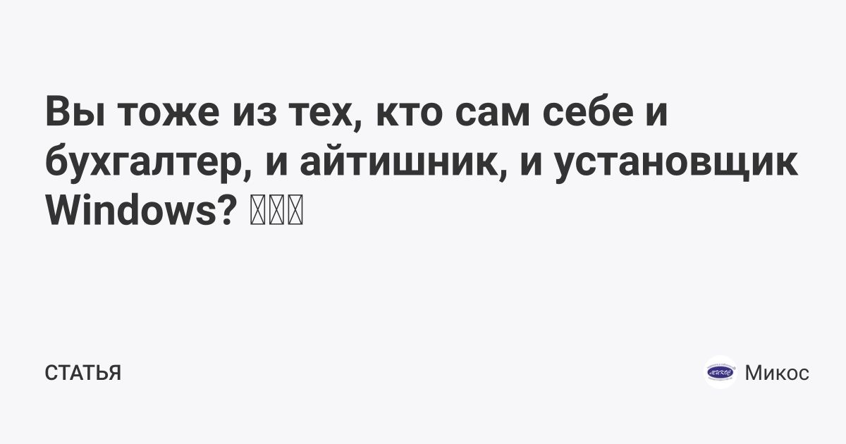 Вы тоже из тех, кто сам себе и бухгалтер, и айтишник, и установщик Windows? 🧑💻