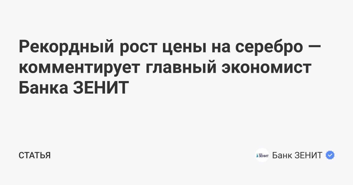 Рекордный рост цены на серебро — комментирует главный экономист Банка ЗЕНИТ