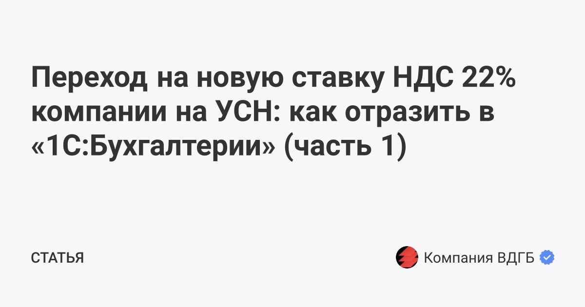 Переход на новую ставку НДС 22% компании на УСН: как отразить в «1С:Бухгалтерии» (часть 1)