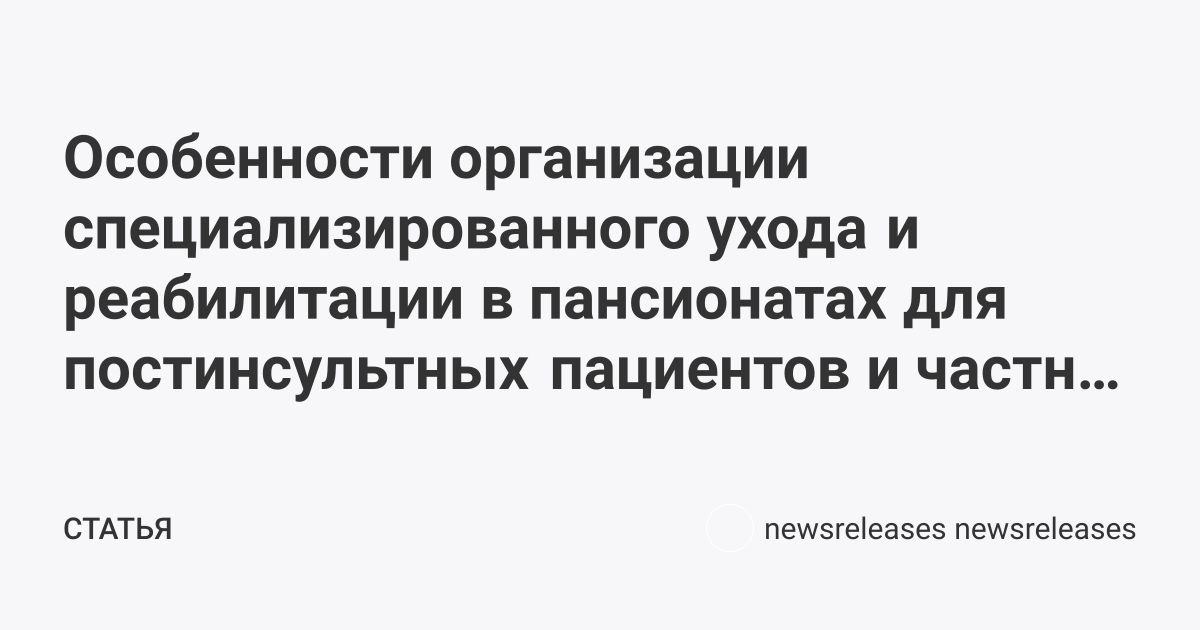 Особенности организации специализированного ухода и реабилитации в пансионатах для постинсультных пациентов и частных домах для пожилых с деменцией