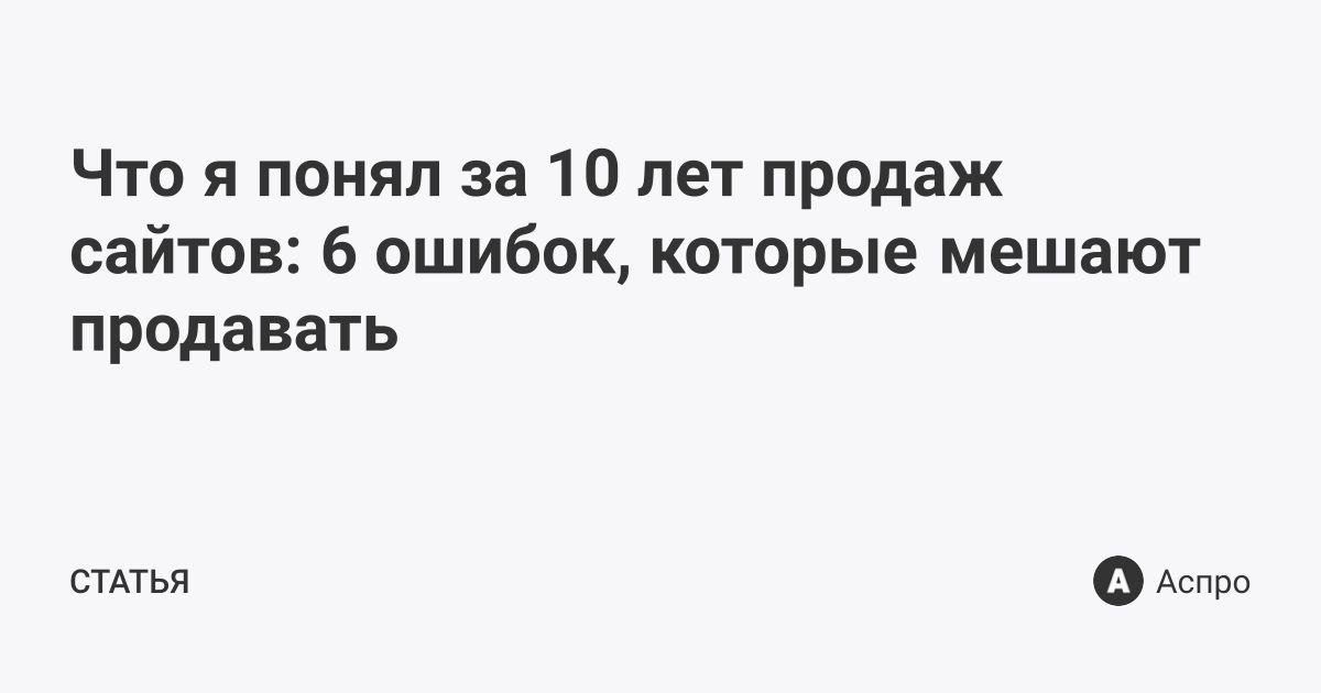 Что я понял за 10 лет продаж сайтов: 6 ошибок, которые мешают продавать