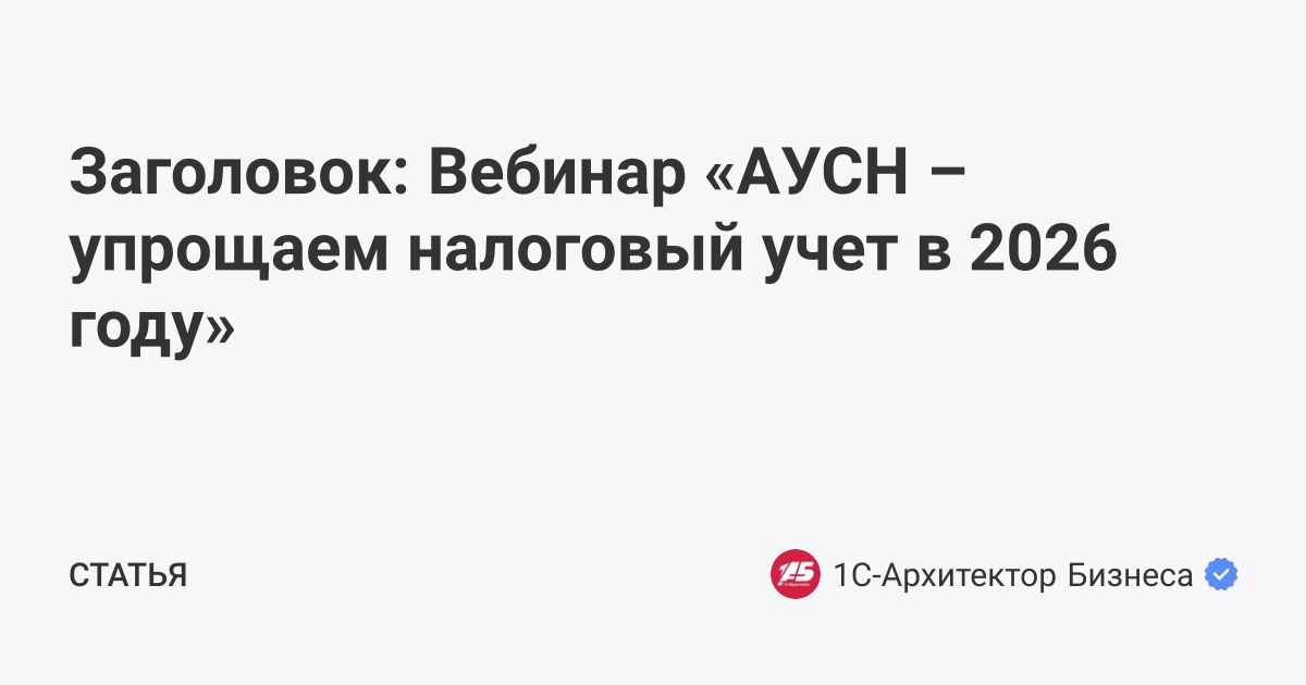 Заголовок: Вебинар «АУСН – упрощаем налоговый учет в 2026 году»