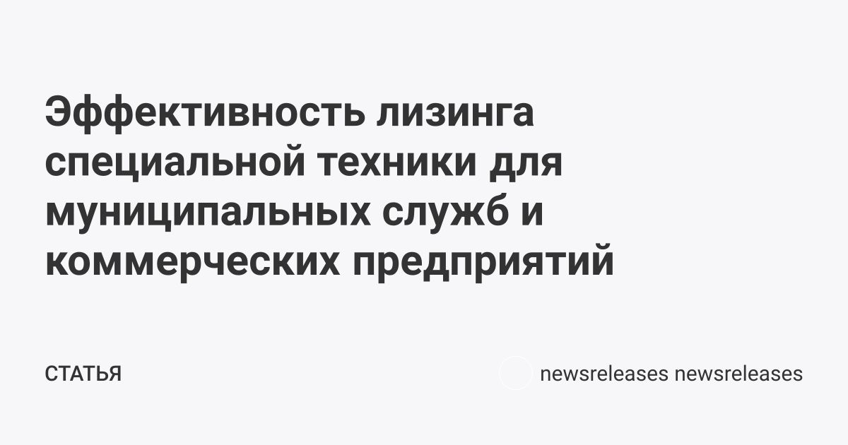 Эффективность лизинга специальной техники для муниципальных служб и коммерческих предприятий