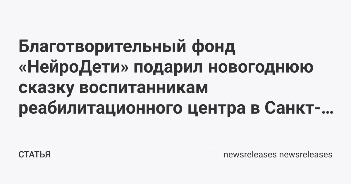 Благотворительный фонд «НейроДети» подарил новогоднюю сказку воспитанникам реабилитационного центра в Санкт-Петербурге