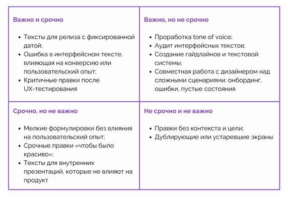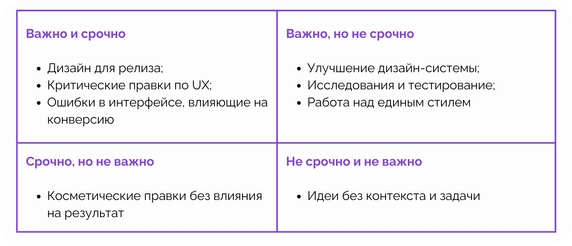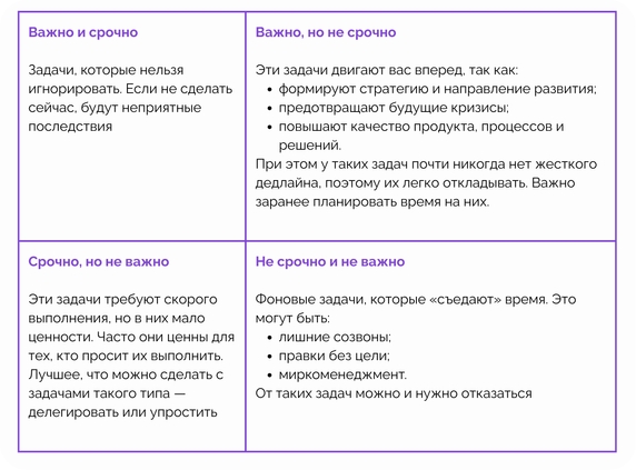 - Срочность. Есть ли дедлайн или реальные последствия, если отложить задачу.