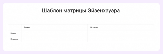 → Забрать шаблон матрицы Эйзенхауэра в документах