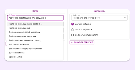 В Kaiten также можно автоматизировать перемещение карточек между колонками. Например, если в HR-команде создается задача с меткой «Новый сотрудник», она автоматически попадает в колонку «Важно и срочно», чтобы команда могла как можно быстрее подключиться к онбордингу и помочь новичку приступить к работе.