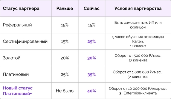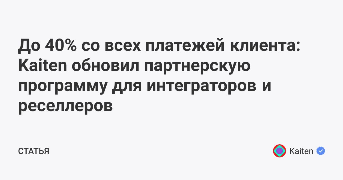Kaiten обновил партнерскую программу, чтобы партнер мог строить регулярный доход на дистанции — не разовую выплату, а повторяющийся кэшфлоу. В программе повышены комиссии и добавлены инструменты, которые помогают партнерам не терять лиды, быстрее заходить в сделки и масштабировать продажи.