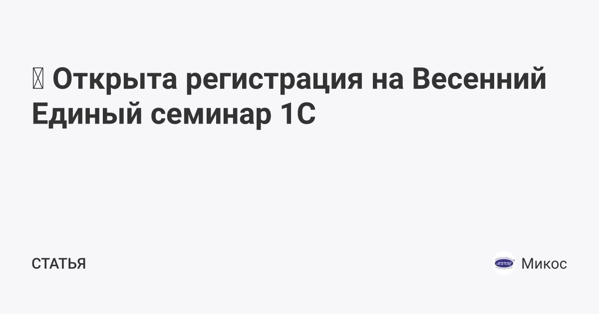 🚀 Открыта регистрация на Весенний Единый семинар 1С | Микос (@mikos) | Мегасреда | 17.02.26, 07:54:09
