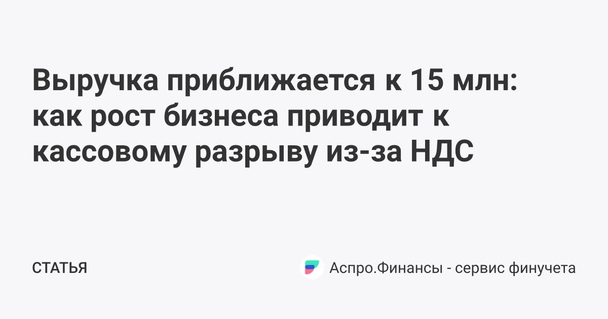 Выручка приближается к 15 млн: как рост бизнеса приводит к кассовому разрыву из-за НДС