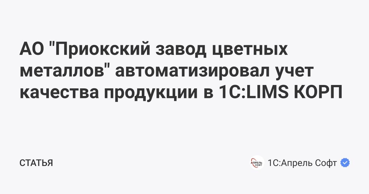 АО "Приокский завод цветных металлов" автоматизировал учет качества продукции в 1С:LIMS КОРП