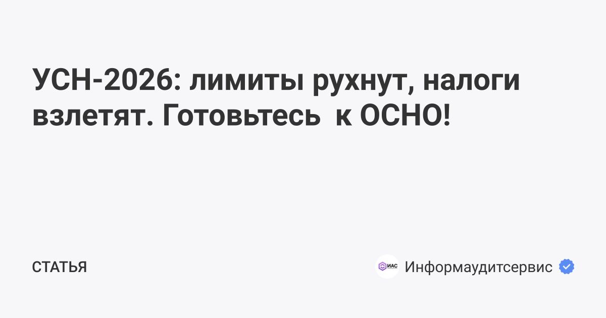 Вы думали, что упрощёнка спасёт от лишних налогов? С 2026 года правила меняются жестко. В тонкостях помогла разобраться руководитель группы департамента бухгалтерского обслуживания "Информаудитсервис", Александра Галкина.