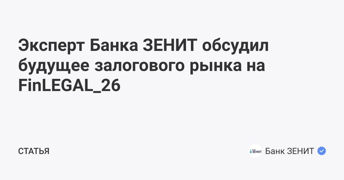 Эксперт Банка ЗЕНИТ обсудил будущее залогового рынка на FinLEGAL_26